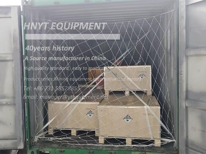 Un lote de accesorios para locomotoras de batería para minería subterránea se cargó en contenedores y se envió a clientes internacionales.